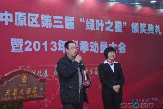 2013年2月21日,長(zhǎng)沙綠葉中原區(qū)第三屆“綠葉之星”頒獎(jiǎng)典禮暨2013年春季動(dòng)員大會(huì)在河南鄭州順利召開。中原區(qū)200余名優(yōu)秀營(yíng)銷經(jīng)理應(yīng)邀參加了會(huì)議。本次會(huì)議受到了公司領(lǐng)導(dǎo)和專家的高度重視,綠葉公司高級(jí)技術(shù)顧問、保健養(yǎng)豬技術(shù)專家、湖南農(nóng)業(yè)大學(xué)教授袁慧老師、傅童生老師、劉進(jìn)輝老師及集團(tuán)總經(jīng)理何興國先生、副總經(jīng)理謝小玲女士出席了會(huì)議。綠葉集團(tuán)董事長(zhǎng)蔣政云先生和綠葉135技術(shù)總工程師文利新教授因故未能出席,特地拍攝了視頻,表達(dá)了對(duì)中原區(qū)綠葉人的感謝和祝福。