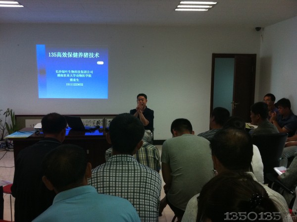 吉林梨樹會議現場 湖南農業大學動醫學教授,綠葉保健養豬專家傅童生老師授課現場 遼寧喀左培訓會議現場