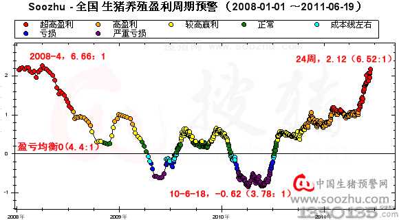 本周是處于4.4:1盈虧均衡線上的第49周,自2010年第42周已連續(xù)在5:1以上保持了35周。