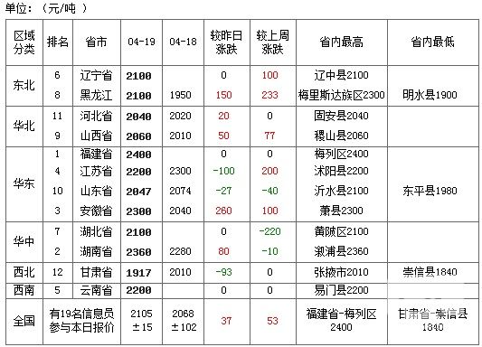 2011年04月20日全國玉米價格排行榜