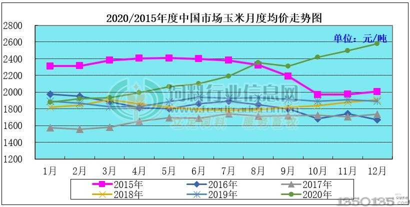 圖表:2020年12月中國玉米月度價格走勢圖(單位:元/噸)