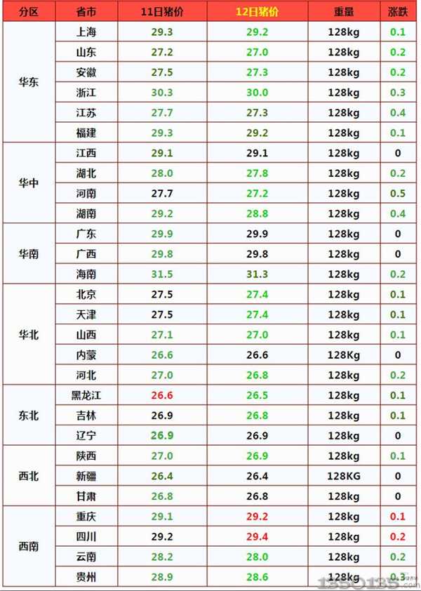 目前,全國主流南北各地產區,豬價延續了弱勢走跌的態勢,行情迎來了9連跌,不過,豬價多地止跌飄紅,西南地區,川渝豬價率先反彈,行情上漲0.1~0.2元一公斤。而在北方低價區,豬價跌勢進一步收窄,華北、東北以及西北地區,豬價普遍下跌維持在0.1~0.2元/公斤,甘肅、新疆、遼寧以及內蒙豬價陸續企穩,東北豬價維持在26.5~26.9元/公斤,豬價進一步回落的空間明顯不足!