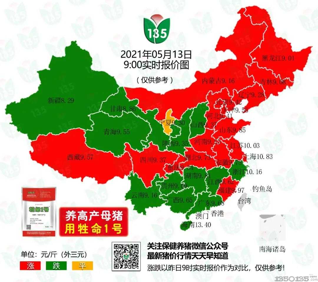 從4月21日到5月13日的這22天時間里,豬價連續下跌,即使五一消費利好也未能扭轉豬價下跌之勢。由于豬價下跌,養豬戶多選擇壓欄等價,14元豬價等到12元,現在跌到了10元,賣與不賣進退兩難,市場大肥強勢施壓,疊加豬肉消費低迷,屠企開工率偏低,生豬需求下降的影響,生豬供需關系由供不應求轉變為供過于求,豬市全面下跌。