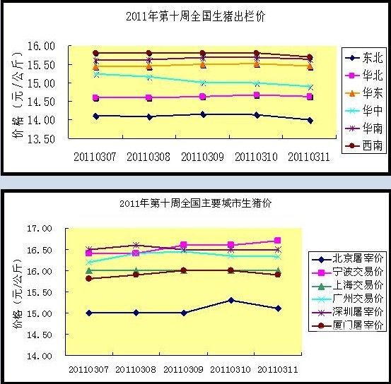 據本所監測,2011年第10周,湖南地區生豬價格變化如下: