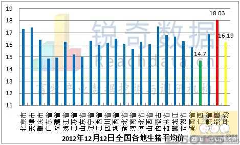 12月12日生豬市場行情與昨日震蕩上揚,全國生豬價格最高地區(qū)為新疆,生豬平均價為18.03元/千克,最低地區(qū)為廣西省,生豬平均價為14.7元/千克,兩地區(qū)差異非常明顯,全國大部分地區(qū)生豬行情震蕩調(diào)整。