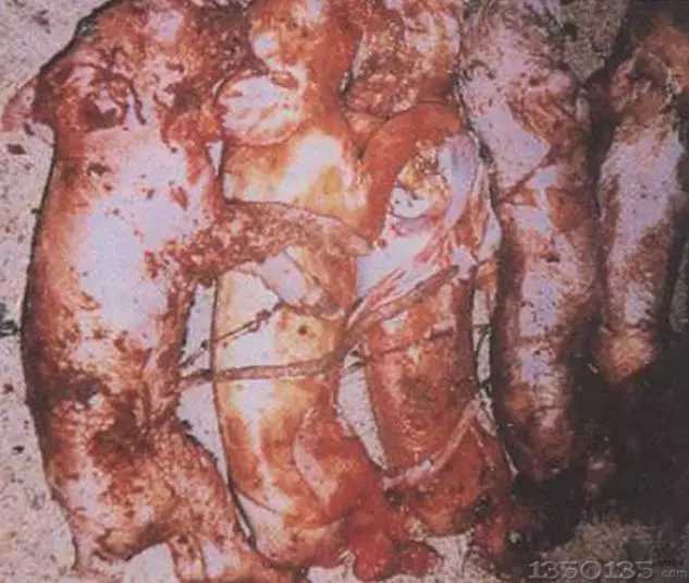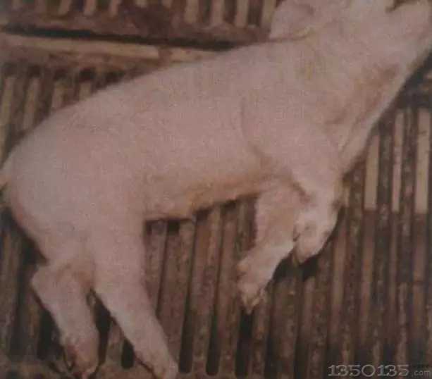 【豬偽狂犬病】呼吸困難,呈腹式呼吸,表現特征性的神經癥狀,先興奮不安,震顫,不停地向前沖或轉運動,叫聲嘶啞,繼之出現痙攣,四肢麻痹,伏臥