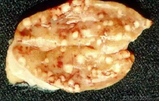【豬偽狂犬病】肝臟表面可見散在的壞死點