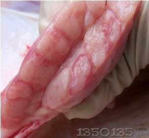 圖4:僵豬剖檢后腹股溝淋巴結腫大