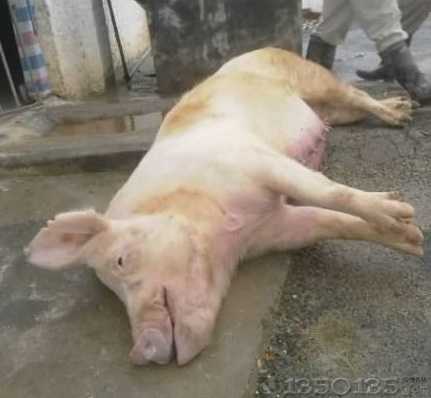 發病豬主要是懷孕的經產母豬,其他階段的豬基本上不發此病。常見癥狀為腹部脹滿,叩之如鼓,伴有食欲不振,食少飽悶,惡心嘔吐等癥。無先期臨床癥狀,吃料正常,體溫正常,表現為突然出現不安,有腹痛表現,腹部迅速彭脹,呼吸急促,母豬面部發紫,繼而臥地不起。從發病開始至死亡0.5~1d,致死率100%。
