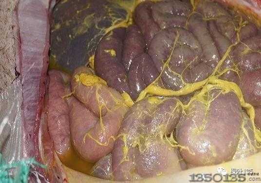 發(fā)病前都有大便秘結(jié)現(xiàn)象。發(fā)病時(shí)見(jiàn)腹部渾圓如鼓,豬腹痛難忍而起臥不安,搖頭、擺尾,趴開(kāi)后肢作排糞尿姿勢(shì),但未排出糞尿,呼吸急促,口吐白沫。如發(fā)病于晚間,會(huì)把料吃得干干凈凈,早晨見(jiàn)死在欄里。尸體僵硬,腹脹隆起,口鼻流白沫。