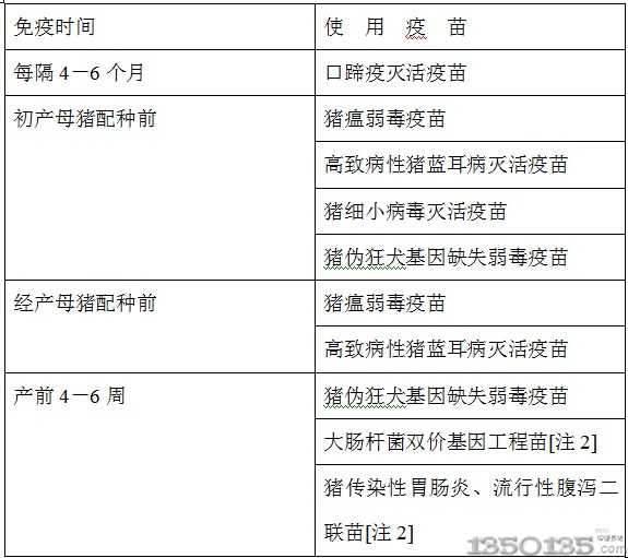 2.〔注2〕:冬春季節(jié),大腸桿菌病、豬傳染性胃腸炎、流行性腹瀉二聯(lián)苗較易發(fā)生,建議進(jìn)行免疫注射。
