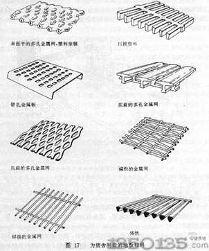 圖17展示了用于豬舍的其他漏縫和漏孔地板材料。這些材料的用途、局限性和結(jié)構(gòu)特點(diǎn)如下: