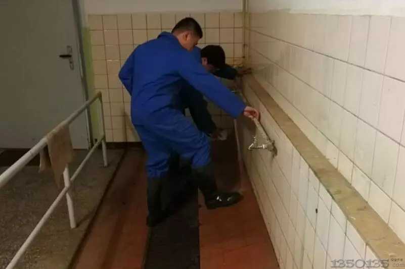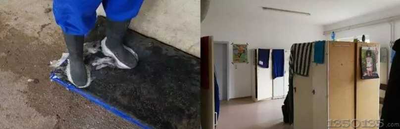 進出農場經更衣換洗間,離開生產區需要將鞋子洗刷干凈,確保生物安全。