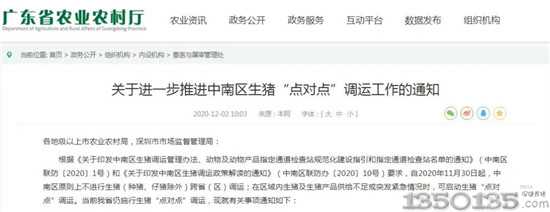 (五)把握“時間”節點。自2020年12月31日起,中南區內未辦理生豬“點對點”調運備案的企業不能跨省(區)調運生豬入我省。各地在2020年12月4日前將符合生豬“點對點”調運條件的我省擬調出生豬的養殖企業和接收省外生豬的屠宰企業資格名單報送我廳,在2020年12月23日前將供粵生豬“點對點”調運備案企業名單報送我廳。