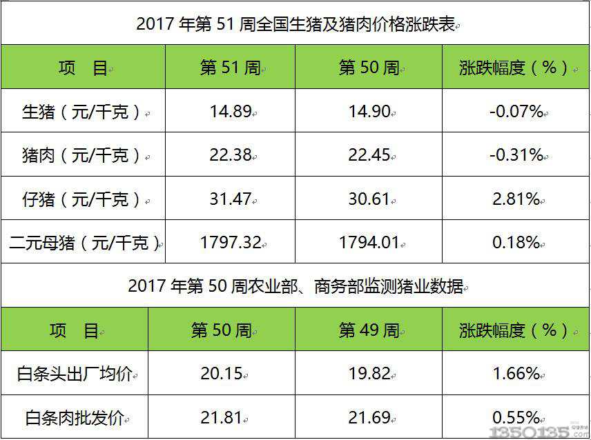 農業部獸醫局12月20日公布的最新數據顯示,上周全國規模以上生豬定點屠宰企業生豬平均收購價格為15.52元/公斤,較前一周上漲0.65%,白條肉平均出廠價格為20.27元/公斤,具體如下表: