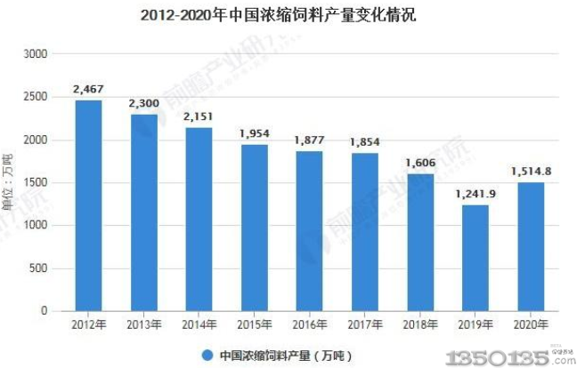 2020年中國濃縮飼料產(chǎn)量超1500萬噸