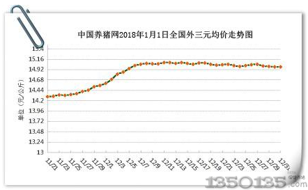 而今天就是元旦,屠企備貨基本完畢,有減量跡象。節后豬價雖仍有走弱風險,但豬肉消費已是旺季,且經過節前集中出欄后,后期出欄或較為平穩,預計節后短期內豬價難再跌,穩定為主。行情寶提醒養殖戶注意節后價格變動,合理安排出欄。小編認為目前生豬出欄處于供需平衡狀態,但是伴隨著元旦、春節的到來,預計豬肉消費將會進入季節性回升通道,豬價會有小幅度的回升,預計春節前豬價將上漲到每斤7.5-8元。短期上漲空間非常有限,而且飼料成本一直在一路上揚,適時出欄,鎖定好自己的利潤,把錢裝進自己的口袋才是王道!
