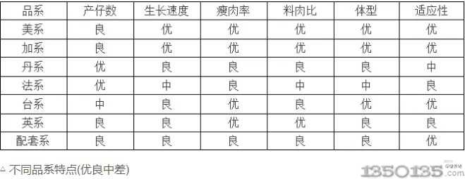 下表從產仔數、生長速度、瘦肉率、料肉比、體型、適應性進行分類比較:
